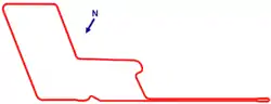 As a result of safety issues and difficulties experienced during the first practice session for the inaugural race at the circuit—the A1GP cars found it difficult to negotiate the tight 180-degree Turn 8 hairpin—the circuit was revised overnight prior to practice on November 11, 2006. The straight leading up to Turn 8 was shortened and the turn was made less tight. The shorter circuit, down from 3.048 to 2.231 km (1.894 to 1.386 mi), was created and creating another less tight hairpin halfway up the straight, bypassing most of the old straight.[2] However, this corner was still not ideal as drivers ran wide despite the corner being wider, and had to avoid the pitlane entry barrier.