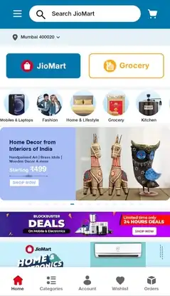 JioMart is an Indian e-commerce company, headquartered in Navi Mumbai, Maharashtra, India, that started as a joint venture between Reliance Retail and Jio Platforms. The company initially focused on online groceries sales before expanding into other product categories such as fashion, home essentials, and lifestyle products.[5][6][7]