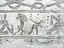 A tombstone from the Han Dynasty depicting a juggler with twelve balls. (From the Shaanxi Suide County Museum)