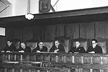Six judges of the Israel Supreme Court sitting at their bench in 1953