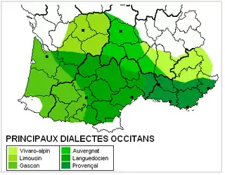 ![]() Approximate distribution of Limousin within the Occitan area | |