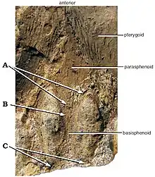 | Holotype partial skull and explanatory drawings | |
