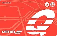 The METRO Q Card is a contactless smart card used to ride on public transportation in Greater Houston. It is administered by the Metropolitan Transit Authority of Harris County. The card can be used on METRO Bus, METRORail, and METROLift.[2] The cards are based upon the MIFARE Classic 1K standard and are freely available but expire.
