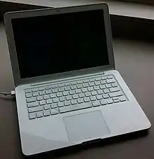 The MacBook is a line of Mac laptops sold by Apple Inc. between May 2006 and February 2012. It replaced the iBook series of notebooks as a part of Apple's transition from PowerPC to Intel processors. Positioned as the low end of the MacBook family, below the premium ultra-portable MacBook Air and the performance-oriented MacBook Pro,[1] the MacBook was aimed at the consumer and education markets.[2] It became the best-selling Mac in Apple's history. For five months in 2008, it was the best-selling laptop of any brand in US retail stores.[3]