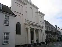 Many of the buildings in the centre of the town have Georgian facades which obscure their earlier origins. Notable buildings include Manningtree Library, which was originally built as 'a public hall for the purposes of corn exchange' and was later used around 1900 for public entertainment,[7] and the Methodist church located on South Street, completed in 1807.[8]