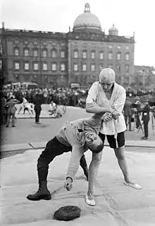 Pahlevani and zourkhaneh rituals is the name of a Persian Martial arts inscribed by UNESCO for varzesh-e pahlavāni (Persian: آیین پهلوانی و زورخانهای, "heroic sport")[7] or varzesh-e bāstāni (ورزش باستانی; varzeš-e bāstānī, "ancient sport"), a traditional system of athletics originally used to train warriors in Iran (Persia), and first appearing under this name and form in the Safavid era, with similarities to systems in adjacent lands under other names.[8][9]