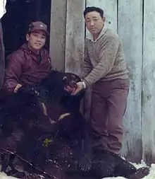 The Matagi (マタギ, or less often 又鬼) are traditional winter hunters of the Tōhoku region of northern Japan, most famously today in the Ani area in Akita Prefecture, which is known for the Akita dogs. Afterwards, it spread to the Shirakami-Sanchi forest between Akita and Aomori, and other areas of Japan. Documented as a specialised group from the medieval period onwards, the Matagi continue to hunt deer and bear in the present day, and their culture has much in common with the bear worship of the Ainu people.