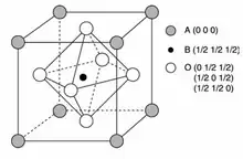 Structure of a perovskite. A membrane would consist of a thin layer of the perovskite structure.
