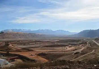 As of September 2019, 10 million tons of tailing (62%) have been removed.[9] A well field is located between the tailing pile and the river, which extracts and purifies groundwater before it enters the Colorado river. As of February 2014 799,000 pounds (362,000 kg) of ammonia and 3,990 pounds (1,810 kg) of uranium have been extracted from the wells. During low water periods, fresh water is injected into the wells.[10] On July 29, 2014 the 7 millionth ton of tailing was placed in the disposal cell.[11]