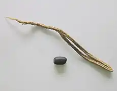 For their battles, and for hunting, the warriors used clubs, poisoned darts with blowpipes, spears and slings, similar to the atlatl of Mesoamerica.[11] The bows and arrows were not produced by the Muisca themselves, but taken from conquered Panche slaves.[10] To defend themselves from the poisoned arrows the Panche used, the guecha warriors covered themselves with multiple layers of cotton mantles.[12] To protect themselves, they use long shields.[11]