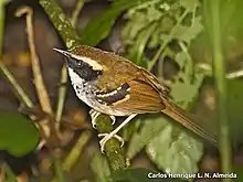 The white-bibbed antbird (Myrmoderus loricatus) is a species of passerine bird in the family Thamnophilidae. It is endemic to Brazil.