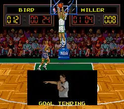 Playing modes available to the players include: H-O-R-S-E, a free throw tournament, a shooting contest involving three-point shots, and a tournament where one NBA player will take on other NBA players for the ultimate prize.[2][3][4] All fouls are called in this game, including minor fouls like goaltending. The winner of each match has a screen with a set of game statistics. Even the offer of a rematch is offered once a game is over.