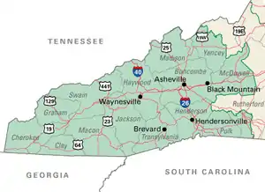 In 2019, a panel of North Carolina judges ruled that the existing map was a partisan gerrymander, and ordered new congressional districts to be drawn ahead of the 2020 election.[5] After review in December, a new map was approved.[6][7] The district included the western part of Rutherford County and the entirety of Avery, Buncombe, Cherokee, Clay, Graham, Haywood, Henderson, Jackson, Macon, Madison, McDowell, Mitchell, Polk, Swain, Transylvania, and Yancey Counties. It still leans Republican, but much less so than the previous iteration, as it once again includes all of Asheville.[6][7]