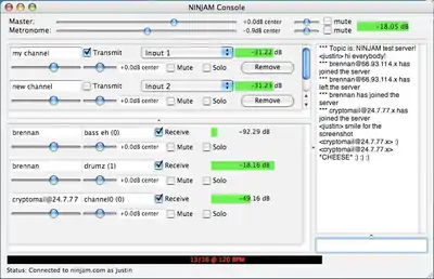 Standalone clients are available for Windows, Mac OS and Linux. As the Linux version works with JACK, it can have audio routed to it from any JACK client. On Windows, use with virtual audio sources is problematic as there is no comparatively easy routing mechanism. Hence it is more suited to real instruments, where it provides a simpler alternative to the complexity of running a DAW just to access NINJAM.