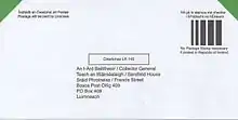 An envelope from the Office of the Revenue Commissioners, stating "No Postage Stamp necessary if posted in Republic of Ireland".