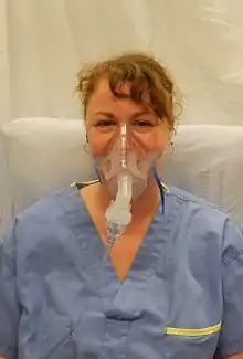 In medicine, a nebulizer (American English)[1] or nebuliser (British English)[2] is a drug delivery device used to administer medication in the form of a mist inhaled into the lungs. Nebulizers are commonly used for the treatment of asthma, cystic fibrosis, COPD and other respiratory diseases or disorders. They use oxygen, compressed air or ultrasonic power to break up solutions and suspensions into small aerosol droplets that are inhaled from the mouthpiece of the device. An aerosol is a mixture of gas and solid or liquid particles.