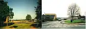 A picture of Kennedy House and related buildings, Banbury in the year 2009 (left) and 2000 (right). It was built in the mid-1960s and named after US President John F. Kennedy.
