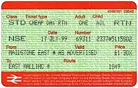 {{cite journal}}: Missing or empty|title=(help) - "ATOC National Fares Manual: Section F (Discounted Travel)" (PDF). Archived from the original (PDF) on 28 September 2007.