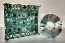 Neurogrid is a piece of computer hardware that is designed specifically for simulation of biological brains. It uses analog computation to emulate ion channel activity, and digital communication to softwire structured connectivity patterns. Neurogrid simulates one million neurons[1] and six billion synapses in real time. The neurons spike at a rate of ten times a second. In terms of number of simulated neurons, it rivals simulations done by the Blue Brain Project. However, by running the simulation of whole neurons, instead of simulation on molecular level, it needs only one millionth of Blue Brain's power. The entire board consumes less than two watts of electrical energy.