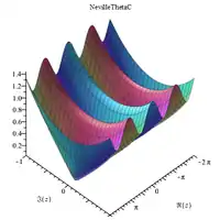 NetvilleThetaC[z,m], NevilleThetaD[z,m], NevilleThetaN[z,m], and NevilleThetaS[z,m] are built-in functions of Mathematica.[6]