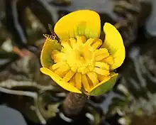Nuphar is a genus of aquatic plants in the family Nymphaeaceae, with a temperate to subarctic Northern Hemisphere distribution. Common names include water-lily (Eurasian species; shared with many other genera in the same family), pond-lily, alligator-bonnet or bonnet lily, and spatterdock (North American species).[2]