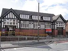 Old Swan is centred on the road junction between Prescot Road, running east to west, Derby Lane (from the north) St Oswald Street (from the south) and Broadgreen Road (from the south-east). It is named after a public house called the Three Swans,[3] which served the pack-horse route along Prescot Lane (now Prescot Road) in the 18th century. The name was derived from the coat of arms of local landowners, the Walton family.[4] The inn stood at the corner of Prescot Lane and Pettycoat Lane (now Broadgreen Road). The junction later acquired two more pubs, the Swan Vaults (now called the Old Swan) and the Cygnet (now closed), while the original pub was replaced by another, the Red House (now closed); this has become a branch of Costa Coffee.[5][6]