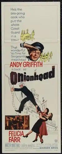 Onionhead is a 1958 American comedy drama film set on a U.S. Coast Guard ship during World War II, starring Andy Griffith and featuring Felicia Farr, Walter Matthau, Erin O'Brien, James Gregory, Joey Bishop, and Claude Akins.[3] It was directed by Norman Taurog and was written by Nelson Gidding and Weldon Hill from Hill's novel. Weldon Hill was the pseudonym of William R. Scott, a native Oklahoman who based the novel on his own World War II service in the Coast Guard.
