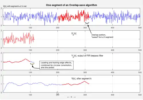 - The leading and trailing edge-effects of circular convolution are overlapped and added,[upper-alpha 3] and subsequently discarded.[upper-alpha 4]