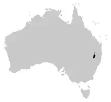 This species was formerly known from five streams at elevations of 800–1120 m draining east in the Northern Tablelands of NSW from Gibraltar Range in the north to Armidale in the south. After searches in these streams and adjacent areas, this species has not been located in the wild since 1973.