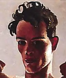 For the rest of his life he continued to paint with a view to making that his career and produced a number of paintings each year (mainly in oil) that were submitted to the Royal Academy, and often accepted for exhibition. In 1933 he produced his most controversial painting, a self-portrait in which, it has been suggested, he is posing as the demonic figure Mephistopheles.[3] In the same year, he had his first exhibit at the Royal Academy, "A Mulatto", a portrait of a lady which was later bought by Dudley Art Gallery. He also exhibited at the Paris Salon and at the Royal Birmingham Society of Artists, of which he was elected an associate in 1936.[1] During this period, he was living in the family council house on the Wren's Nest. Despite his success at having his paintings included in prestigious exhibitions, few of them sold and his only significant income was from his teaching. He had no studio and often painted in his small bedroom.[4]