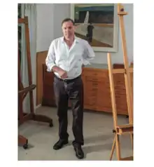 Peter Serwan (born 1962, in Mount Gambier) is an Australian artist and educator based in Adelaide, South Australia. Serwan is known for his paintings of urban landscapes. Working mostly in the medium of oil paint, he is also a fine printmaker. Serwan draws his subjects from his immediate environment, frequently incorporating his family, friends, and colleagues as models. Recurring subjects in his works are backyards, suburban street fronts, and new housing developments. His paintings are often populated by suited men, stray dogs, cats, wheelie bins, and orange bunting. A testing ground for national identity, Serwan’s depictions of urban Australia reflect on themes of suburban isolation with an eye for the everyday minutiae of life, and its everyday absurdities and wonders, with dry wit and sharp observation. He has exhibited frequently in Australia and is represented in private and institutional collections. [1][2][3][4][5]