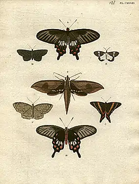 Pieter Cramer (21 May 1721 (baptized) – 28 September 1776) was a wealthy Dutch merchant in linen and Spanish wool, remembered as an entomologist. Cramer was the director of the Zealand Society, a scientific society located in Flushing, and a member of Concordia et Libertate, based in Amsterdam. This literary and patriotic society, where Cramer gave lectures on minerals, commissioned and/or financed the publishing of his book De uitlandsche Kapellen, on foreign (exotic) butterflies, occurring in three parts of the world Asia, Africa and America.[1]
