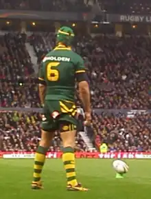 The place kick is commonly used in rugby league for kick offs[2] and most kicks at goal (penalty goals and conversions).[2]