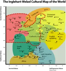 Trust is a major factor in political culture, as its level determines the capacity of the state to function.[65] Postmaterialism is the degree to which a political culture is concerned with issues which are not of immediate physical or material concern, such as human rights and environmentalism.[64] Religion has also an impact on political culture.[65]