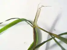 Hybrids with P. acutifolius[7] (P. × bambergensis Fischer), P. oxyphyllus (P. × faurei Miki) and P. trichoides (P. × ripoides Baagøe) [1][4] have been recorded. P. × bambergensis may be reasonably frequent where the two species coexist, but like many fine-leaved pondweed hybrids, is difficult to identify reliably without using genetic techniques.[7]