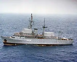 ![]() Port view of the Soviet Primorye Class intelligence ship | |