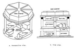 The device was designed to conduct three experiments, two of which failed. The first failed one was intended to test seed growth in microgravity in an unconventional way—by germinating seeds on a spinning disc. The degree of artificial gravity on the spinning wheel is highest (0.25 g or 2.5 m/s²) at its rim and lowest at its center. Using this fact, the influence of different levels of gravity on seed germination could be determined by placing seeds at different radial locations on the disk. At the end of the mission, the growth was to be arrested. After return the orientation of the roots were to be used to determine the threshold of gravity at which a plant could determine which way was down. A second failed experiment on fluid dynamics was intended to measure the bulk oscillations of a drop of mercury immersed in a clear liquid. A short circuit prevented the seed and mercury drop experiments from functioning.[1]