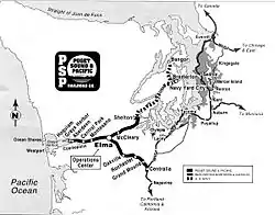 The PSAP interchanges with BNSF Railway and Union Pacific Railroad near Centralia, Washington. From there, the line reaches west to Grays Harbor, Washington, and northeast to Bangor, Washington, a total of nearly 80 miles (130 km). This line serves Naval Base Kitsap with its only rail connection to the rest of the North American rail network.