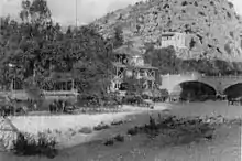 The 5th Cavalry Division and 14th Brigade arrived in Rayak on 6 October to find considerable destruction caused by an RAF air-raid on 2 October and captured some prisoners, railway rolling stock and military equipment.[45][32][46] Here the remains of 32 German aircraft were found, "including some of the latest type, [which] had been either abandoned or burnt by the enemy."[47] Military equipment, engineers' stores, several locomotives and rail trucks were captured at Rayak. The 14th Cavalry brigade also captured 177 prisoners and some guns when they occupied Zahle a few miles north of Rayak, also without opposition.[22][32][45][46]