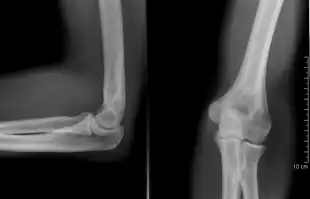 ![]() Projectional radiography of the knee in a modern X-ray machine | |