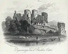 Rhuddlan Castle was again garrisoned by Royalist troops during the English Civil War, and remained a stronghold of King Charles I of England until well after the Battle of Naseby, being taken by Parliamentary forces under Thomas Mytton after a siege in 1646.[1] Two years later, Parliamentarians partially demolished the castle to prevent any further military use. By the time Pennant passed through in 1781, it was largely ruined.[7]