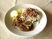 ![]() Rice and brown beans served in a hotel in the southeast Brazilian countryside. The dish may be accompanied by meat, bread, eggs, vegetables, etc. | |