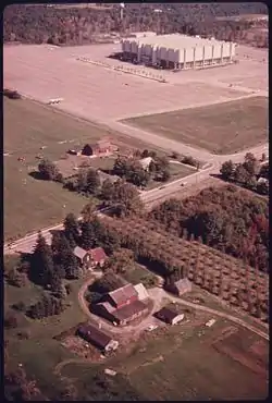 ![]() Aerial view of the Coliseum and neighboring farms in 1975 | |