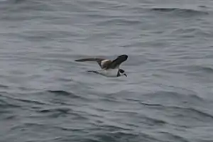 The ringed storm petrel (Hydrobates hornbyi), also known as Hornby's storm petrel, is a seabird that ranges in the Humboldt Current off the coasts of South America. The species is a very distinctive member of the storm petrel family, with a dark cap, white face and underparts, forked tail and a black band across the chest. It is relatively common in the seas off Peru, Chile and Ecuador. The species is named after Admiral Sir Phipps Hornby.
