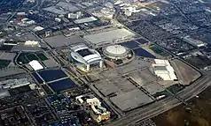 Other landmarks built in the giant southwest Houston development project surrounding the Astrodome, which Hofheinz dubbed the Astrodomain,[23] included the Astrohall exposition center (billed as the largest one-story convention facility in the world) and the first major theme park in coastal Texas, AstroWorld, which opened in 1968. In addition, the Astrodomain included a four-hotel complex totaling 970 rooms on Kirby Drive to serve tourists, Astrodome patrons, and theme park guests.[33][34]