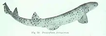 The rusty carpetshark (Parascyllium ferrugineum) is a carpetshark of the family Parascylliidae found off southern Australia between latitudes 31°S and 41°S near the ocean floor on the continental shelf. It inhabits rocky reefs and seagrass beds 5–150 m (16–492 ft) in depth by night, hiding in caves by day. Its length is up to 80 cm (2.6 ft) TL and it feeds on crustaceans and molluscs. Reproduction is oviparous,[2] with pups being born at 17 cm (6.7 in) in length.[1]