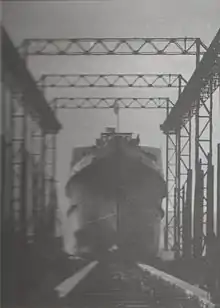 That same day, her sister Tynwald also had problems trying to berth in Douglas,[3] which before the construction of the Princess Alexandra Pier in 1984, was particularly hazardous during strong easterly winds. Taking that morning's sailing from Liverpool to Douglas, Tynwald had great difficulty berthing at the King Edward VIII Pier, and suffered damage to the belting on her starboard side, over a distance of about five metres, as well as suffering damage to her plating.[3] Finally she secured alongside, and having discharged her passengers and mail, Tynwald then departed for Liverpool at 15:50, taking the passengers and mail which should have left on Fenella's morning sailing.[3]