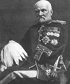 During the Second Anglo-Afghan War in 1878–9, Browne commanded the Peshawar Valley Field Force. After entering Afghanistan via the Khyber Pass, and defeating the Afghan army at the battle of Ali Masjid on 21 November 1878, he occupied Jalalabad on 20 December. However, further advance towards Kabul in the new year was slowed by transport difficulties. After the end of the first phase of the war in May 1879, Browne's force returned to India. Although criticised by the viceroy Lord Lytton for the slow pace of his advance,[1] Browne was made a Knight Commander of the Order of the Bath (KCB)[7] and received the thanks of both Parliament and the government of India for his Afghan service. He retired from active service in 1884,[8] was promoted general on 1 December 1888[9] and made a Knight Grand Cross of the Order of the Bath (GCB) in 1891.[10]
