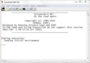 ![]() Screenshot of ScicosLab 4.4 beta 7 running under Windows 7 | |