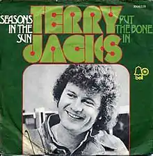 Jacks's version was released in the United States in December 1973 and made the Billboard Hot 100 a month later. On March 2, 1974, the song began a three-week run at number one atop the Hot 100 and remained in the top 40 until almost Memorial Day weekend. Jacks's version also spent one week on the Easy Listening charts.[10] Billboard ranked it as the number two song for 1974.[11] Although he released several other singles that were moderately successful in Canada, "Seasons in the Sun" would become Jacks's only major solo hit in the United States.[12] In Canada, the single (Gold Fish GF 100) reached number one on the RPM magazine charts January 26, 1974, and remained there four weeks.